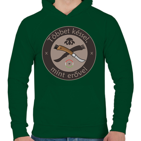 1 kép PRINTFASHION Többet késsel, mint erővel! - Férfi kapucnis pulóver - Sötétzöld