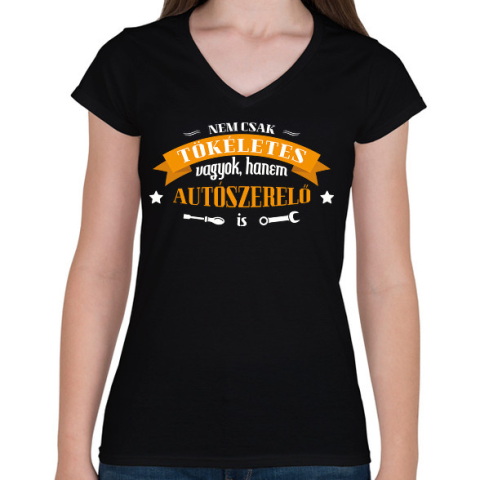 1 kép PRINTFASHION Tökéletes autószerelő - Női V-nyakú póló - Fekete