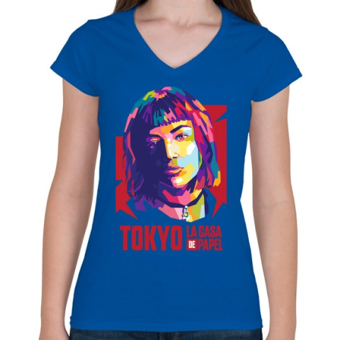 1 kép PRINTFASHION TOKYO - Női V-nyakú póló - Királykék