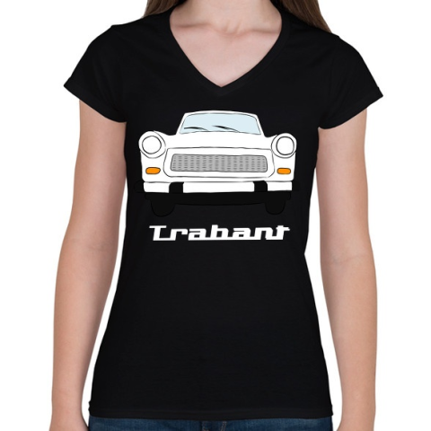 1 kép PRINTFASHION Trabant - Női V-nyakú póló - Fekete