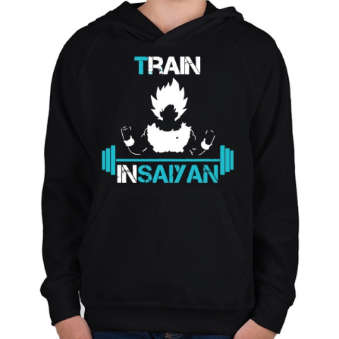 1 kép PRINTFASHION Train In Saiyan - Gyerek kapucnis pulóver - Fekete