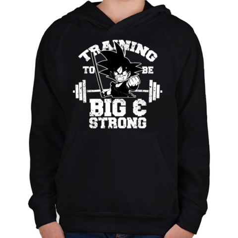 1 kép PRINTFASHION Trainging to be be and strong - Gyerek kapucnis pulóver - Fekete