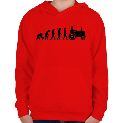 1 kép PRINTFASHION Traktor evolúció - Gyerek kapucnis pulóver - Piros