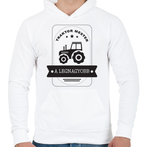 1 kép PRINTFASHION Traktor mester - A legnagyobb - Férfi kapucnis pulóver - Fehér