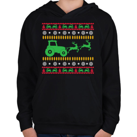 1 kép PRINTFASHION Traktoros karácsony - Gyerek kapucnis pulóver - Fekete