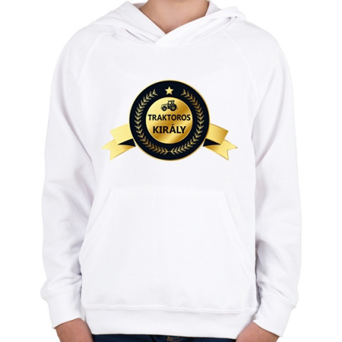 1 kép PRINTFASHION Traktoros király - Arany - Gyerek kapucnis pulóver - Fehér