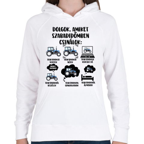 1 kép PRINTFASHION Traktoros szabadidő - Női kapucnis pulóver - Fehér