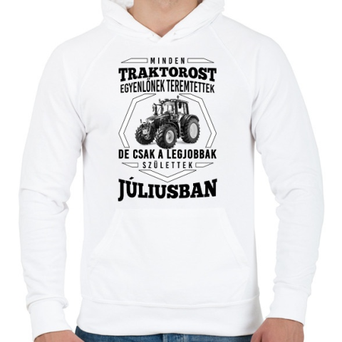 1 kép PRINTFASHION traktoros szülinap - július - Férfi kapucnis pulóver - Fehér