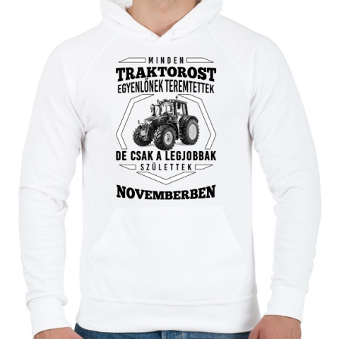 1 kép PRINTFASHION TRAKTOROS SZÜLINAP - November - Férfi kapucnis pulóver - Fehér