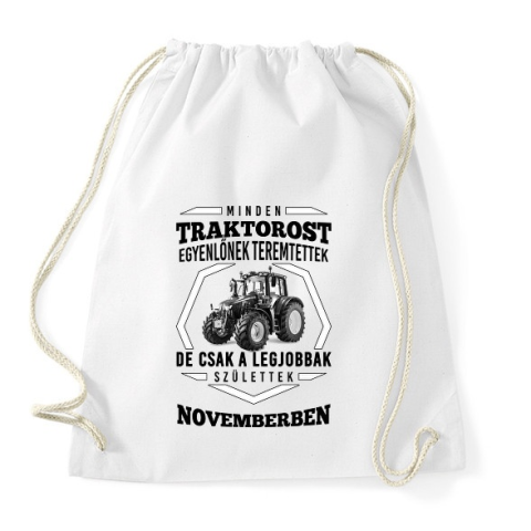 1 kép PRINTFASHION TRAKTOROS SZÜLINAP - November - Sportzsák, Tornazsák - Fehér