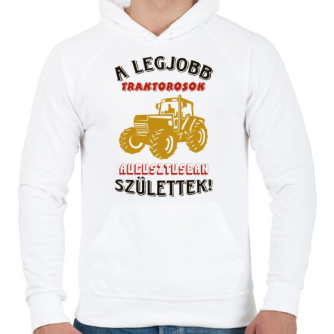 1 kép PRINTFASHION Traktoros szülinapja augusztus - Férfi kapucnis pulóver - Fehér