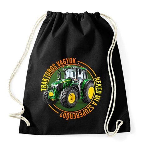 1 kép PRINTFASHION Traktoros vagyok, neked mi a szupererőd? - Sportzsák, Tornazsák - Fekete