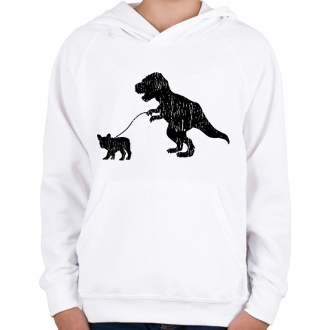 1 kép PRINTFASHION Trex kutyát sétáltat - Gyerek kapucnis pulóver - Fehér