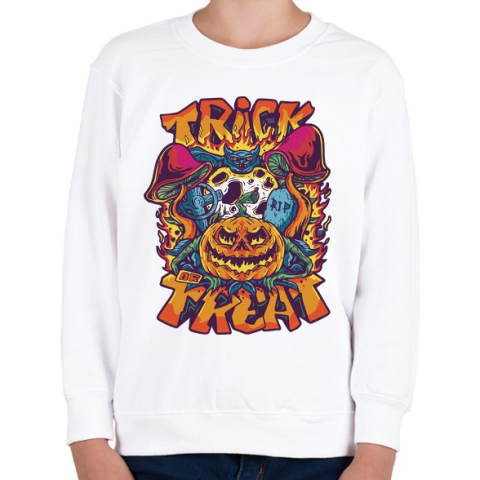 1 kép PRINTFASHION Trick or treat halloween - Gyerek pulóver - Fehér