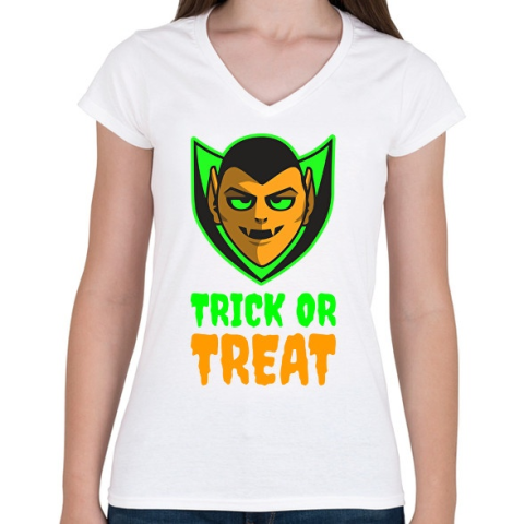 1 kép PRINTFASHION Trick or Treat - Női V-nyakú póló - Fehér
