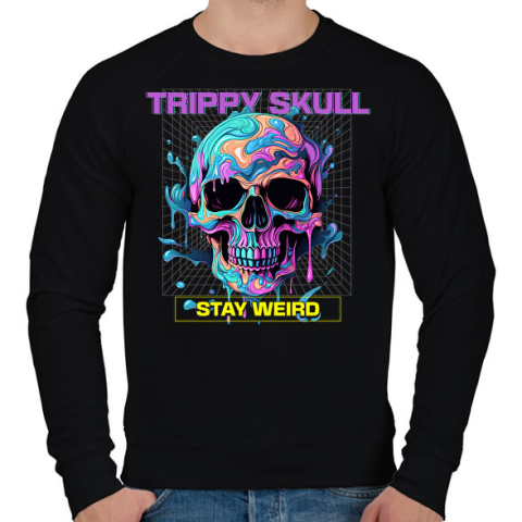 1 kép PRINTFASHION Trippy Skull - Férfi pulóver - Fekete