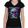 1 kép PRINTFASHION Trippy Skull - Női V-nyakú póló - Fekete