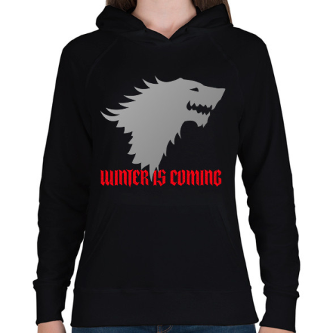 1 kép PRINTFASHION Trónok Harca - winter is coming - Női kapucnis pulóver - Fekete