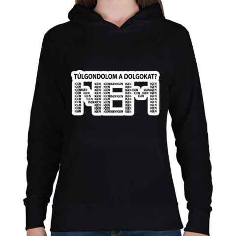 1 kép PRINTFASHION Túlgondolom a dolgokat? NEM igenigenigen - Női kapucnis pulóver - Fekete