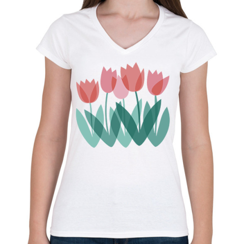 1 kép PRINTFASHION Tulipánok - Női V-nyakú póló - Fehér
