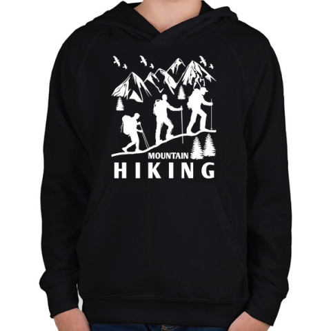 1 kép PRINTFASHION túrázás - Gyerek kapucnis pulóver - Fekete