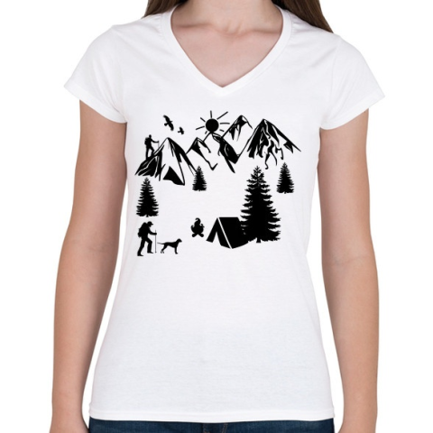 1 kép PRINTFASHION túrázás - Női V-nyakú póló - Fehér