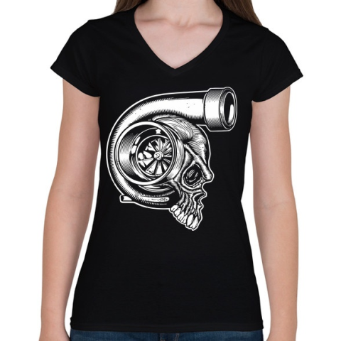 1 kép PRINTFASHION Turbó koponya - Női V-nyakú póló - Fekete