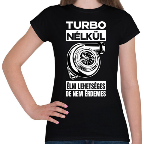 1 kép PRINTFASHION TURBO NÉLKÜL ÉLNI LEHETSÉGES DE NEM ÉRDEMES - Női póló - Fekete
