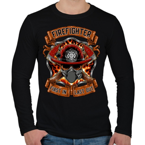 1 kép PRINTFASHION Tűzoltó - First in Last Out - Férfi hosszú ujjú póló - Fekete