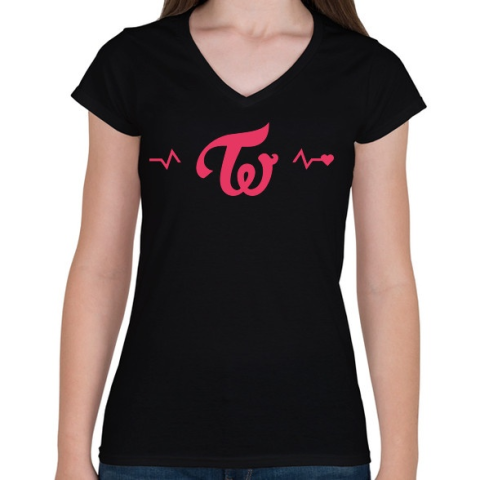 1 kép PRINTFASHION Twice Love - Női V-nyakú póló - Fekete