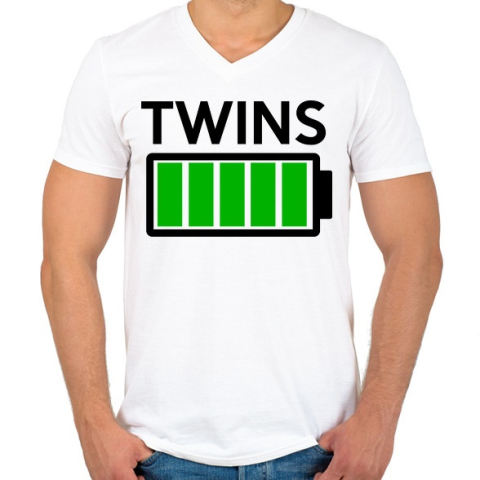 1 kép PRINTFASHION TWINS - Férfi V-nyakú póló - Fehér