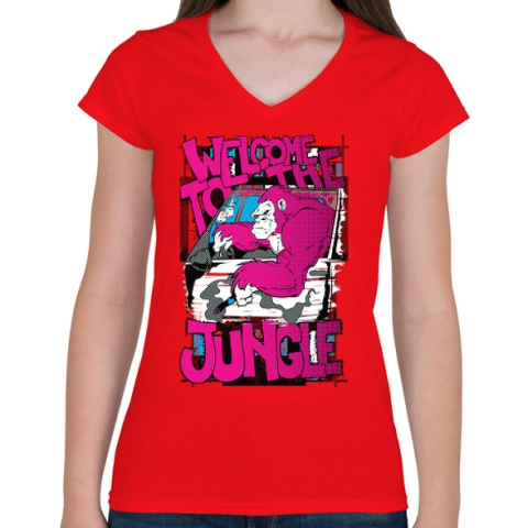 1 kép PRINTFASHION Üdv a dzsungelben - Női V-nyakú póló - Piros