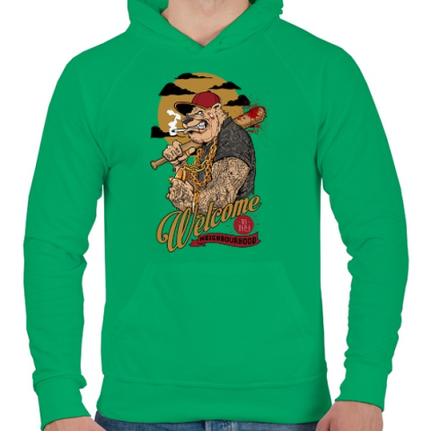 1 kép PRINTFASHION Üdvözöllek a környéken - Férfi kapucnis pulóver - Zöld
