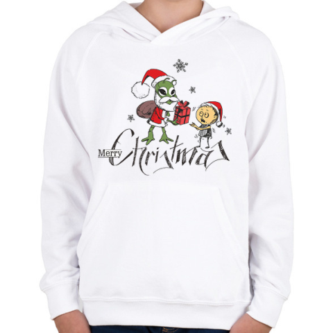 1 kép PRINTFASHION ufo karácsony - Gyerek kapucnis pulóver - Fehér