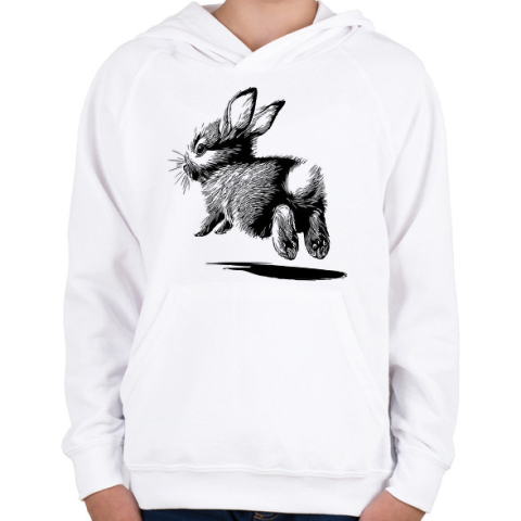 1 kép PRINTFASHION Ugró nyúl / cuki nyuszi rajz - Gyerek kapucnis pulóver - Fehér