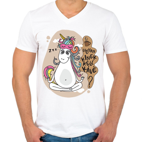 1 kép PRINTFASHION Ugyan kinek kell kávé? - Férfi V-nyakú póló - Fehér
