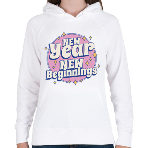 1 kép PRINTFASHION Új év, új kezdet - Női kapucnis pulóver - Fehér