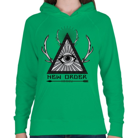 1 kép PRINTFASHION Új rend - Női kapucnis pulóver - Zöld