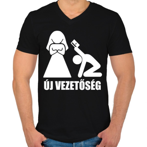 1 kép PRINTFASHION Új vezetőség - Férfi V-nyakú póló - Fekete