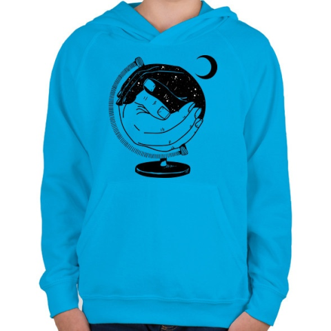 1 kép PRINTFASHION Új világ - Gyerek kapucnis pulóver - Azúrkék