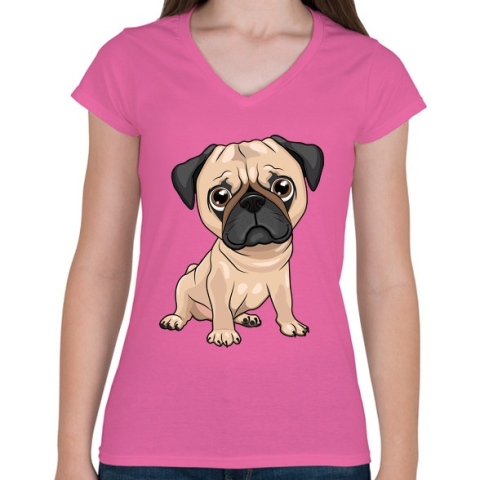 1 kép PRINTFASHION Ülő mopsz - Női V-nyakú póló - Rózsaszín