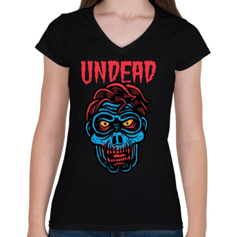 1 kép PRINTFASHION Undead - Női V-nyakú póló - Fekete