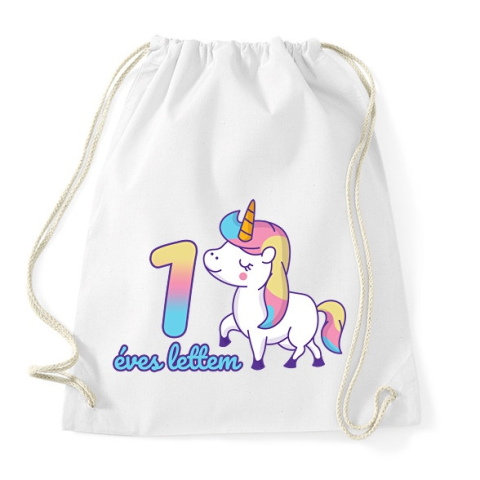 1 kép PRINTFASHION Unikornis: 1 éves lettem - Sportzsák, Tornazsák - Fehér