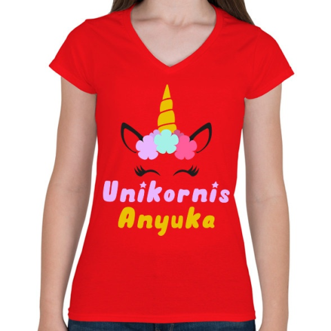 1 kép PRINTFASHION Unikornis Anyuka - Női V-nyakú póló - Piros
