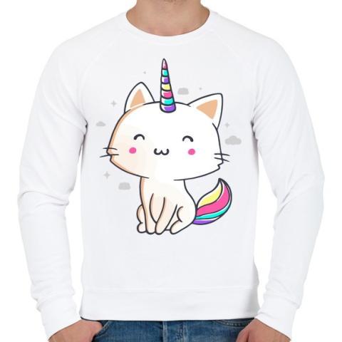 1 kép PRINTFASHION Unikornis cica - Férfi pulóver - Fehér