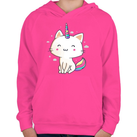 1 kép PRINTFASHION Unikornis cica - Gyerek kapucnis pulóver - Fukszia