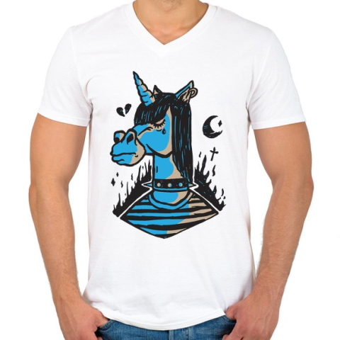 1 kép PRINTFASHION Unikornis depis - depressziós - Férfi V-nyakú póló - Fehér