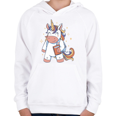 1 kép PRINTFASHION Unikornis diák - Gyerek kapucnis pulóver - Fehér