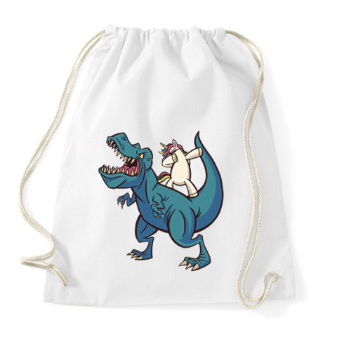 1 kép PRINTFASHION Unikornis dínó háton - Sportzsák, Tornazsák - Fehér