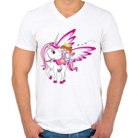 1 kép PRINTFASHION Unikornis és királylány - Férfi V-nyakú póló - Fehér